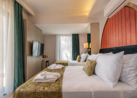 Всички стаи са оборудвани с климатик, телевизор, телефон, баня с душ, сешоар, минибар (безплатен), сейф (безплатен), балкон.