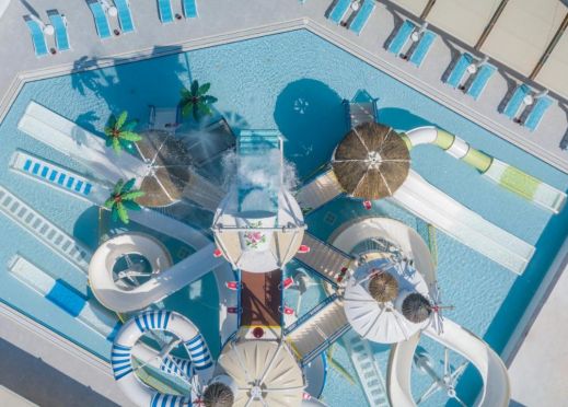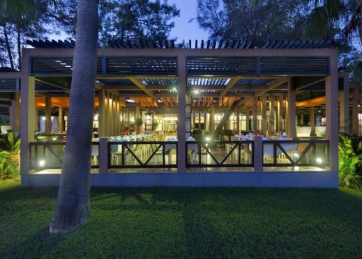Основен ресторант, 2 а-ла-карт ресторанта (рибен и турски - срещу заплащане, с предварителна резервация), сладкарница, 5 бара, снек бар, 4 открити басейнa, аквапарк, СПА център, дискотека, магазини, конферентнa залa, паркинг.