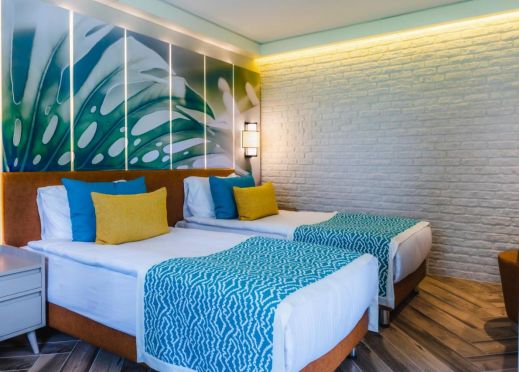 323 Standard rooms от които: 18 Back Yard Standart Room (двойно легло, френски балкон и тераса, разположени на 350 м от брега на морето – 20м2); 181 Middle Yard Standart Room (двойно или две единични легла, френски балкон и тераса, разположени на 200-250 м от брега на морето – 21м2); 124 Front Yard Standart (двойно или две единични легла, френски балкон и тераса, разположени на 100-150 м от брега на морето – 21м2); 23 Quadro rooms от които: 8 Middle Yard Quadro (двойно или две единични легла, френски балкон и тераса, разположени на 200-250 м от брега на морето – 30 м2); 15 Front Yard Quadro (двойно или две единични легла, френски балкон и тераса, разположени на 100-150 м от брега на морето – 30 м2); 70 Family rooms от които: 58 Back Yard Family Room (две спални с двойно и две единични легла, френски балкон и тераса, разположени на 350 м от брега на морето – 37 м2); 12 Front Yard Family (две спални с двойно и две единични легла, френски балкон и тераса, разположени на 100-150 м от брега на морето – 37 м2); 14 Family Suite (две спални с двойно и две единични легла, 2 бани, френски балкон и тераса, разположени на 100 м от брега на морето, 37-46 м2); 8 Villas (4 спални и 4 бани, френски балкон и тераса, разположени на 250 м от брега на морето – 100 м2).