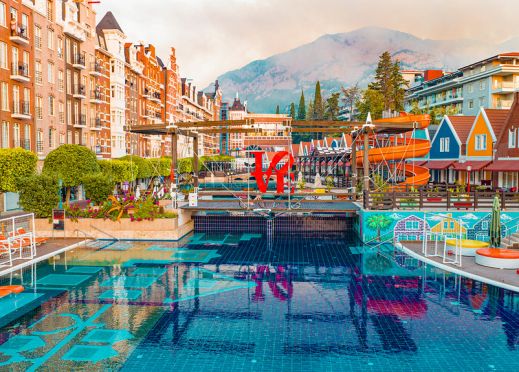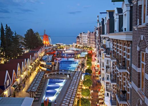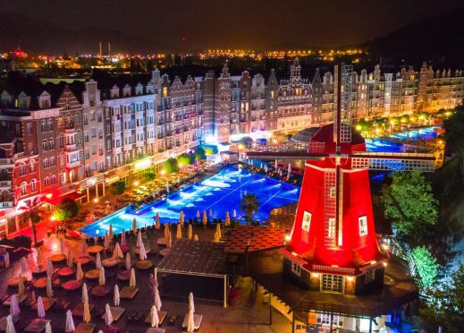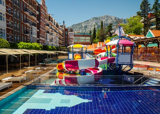 3 ресторанта, 7 бара, кафене, сладкарница, открит и закрит басейн, 2 водни пързалки, СПА център, конферентна зала