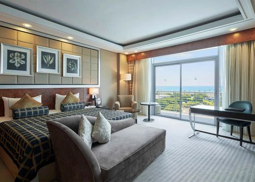 Хотелът разполага общо с 502 стандартни стаи и 63 фамилни стаи. Всички стаи са оборудвани с: климатик, сателитна телевизия, телефон, баня с душ или вана, сешоар, минибар (безплатно), балкон, интернет. Почистване на стаите – всеки ден.