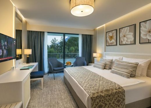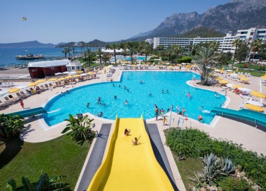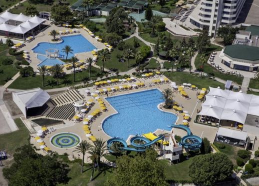 Основен ресторант, 2 а - ла - карт ресторанта (с предварителна резервация - срещу заплащане), 9 бара, 2 открити и 1 закрит басейн, водни пързалки, тенис кортове, баскетболно игрище, мини футбол, дискотека. За децата: Детски басейни – открит и закрит, мини клуб (4-7 г.), джуниър клуб (8-12 г.), детско кино, детска площадка, детски секция в основния ресторант, анимация. Безплатни услуги: Сауна, парна баня, турска баня, фитнес, аеробика, водна гимнастика, стрелба с лък, уиндсърфинг (с лиценз), тенис на маса, плажен волейбол, мини голф, тенис на корт, анимация, WiFi (в лоби). Платени услуги: Масаж, СПА процедури, фризьор, лекар, химическо чистене, боулинг, билярд, електронни игри, рент-а-кар, наем на велосипеди, спортна/тенис екипировка, осветление за тенис корт, моторни водни спортове, бизнес център. ПЛАЖ: Собствен, чакълест плаж. Чадъри, шезлонги, матраци, плажни кърпи на плажа и при басейна - безплатни.