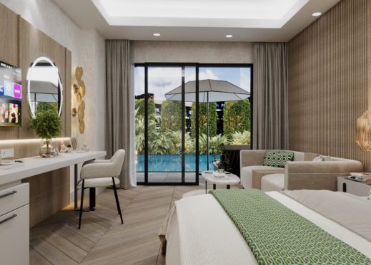 Хотелът разполага с общо 599 стаи, разположени в 4-етажни блокчета. Стаи Standard Room Garden View (стандартна стая с изглед градина - 37 м²), Standard Room Pool view (стандартна стая с изглед басейн - 37 м²), Standard room Direct Pool access (стандартна стая с директен достъп до общ басейн - 35 м²), Standard Room Sea View (стандартна стая с изглед море -35 м²), Standard Swim-up Room (стандартна стая с достъп до общ басейн - 35 м²), Deluxe Standard Room Garden View (1 спалня, 1 едиично легло, с изглед суша - 37 м²), Deluxe Standard Room Pool Access (1 спалня с единично легло, с директен достъп до басейн - 37 м²), Deluxe Standard Room Pool Access via stairs (1 спалня с единично легло, директен достъп до басейн със стълби - 37 м²), Family Room Garden View (състои се от две спални и две бани - 37 м²), Deluxe Family Room Pool Access (състои се от две стаи и две бани, с достъп до басейн - 37 м²), Deluxe Family Room Pool Access Via Stairs (2 спални, 2 бани, с достъп до басейн със стълби - 37 м²), Family Room Swim up (2 спални и 2 бани, с достъп до басейн - 37 м²), Suite Room Swim up (2 спални, 1 баня, 1 всекидневна, с достъп до басейн - 60 м²), Villa house (3 спални, 1 баня и 1 всекидневна - 125 м²).