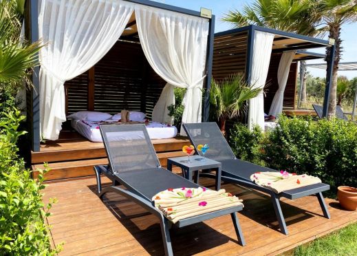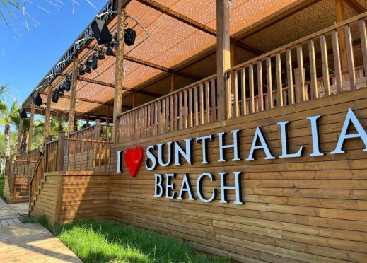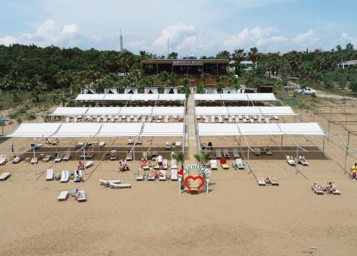 Собствен, на 500 м. от хотела, пясъчен. Безплатен шатъл до плажа (в определен часови диапазон). Чадъри и шезлонги на плажа и при басейна - безплатно. Плажни кърпи – срещу депозит.