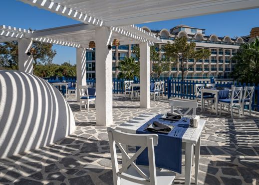Основен ресторант, 2 а-ла-карт ресторанта (интернационален и рибен - срещу заплащане, с предварителна резервация), снек бар, гьозлеме, сладкарница, 4 бара, 2 открити басейна, 2 водни пързалки, СПА център, магазини, паркинг.
